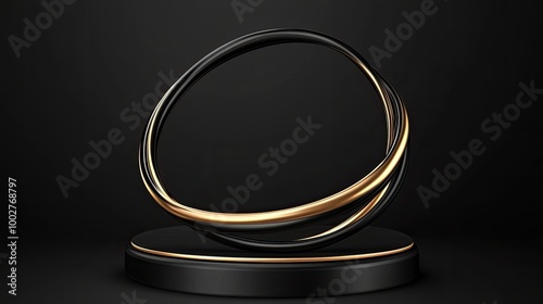 A sleek black podium illuminated by light waves creates a stunning backdrop for showcasing products. The design features intricate textures with a professional finish