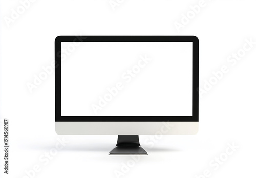 A sleek computer monitor with a blank white screen on a clean white background