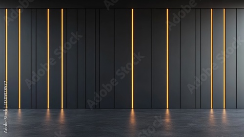 A sleek gray industrial backdrop with uniform paneling and glowing edges.