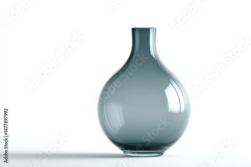 A sleek, round glass vase in a soft teal shade sits against a bright white background. The simple design and calming color create a serene mood.
