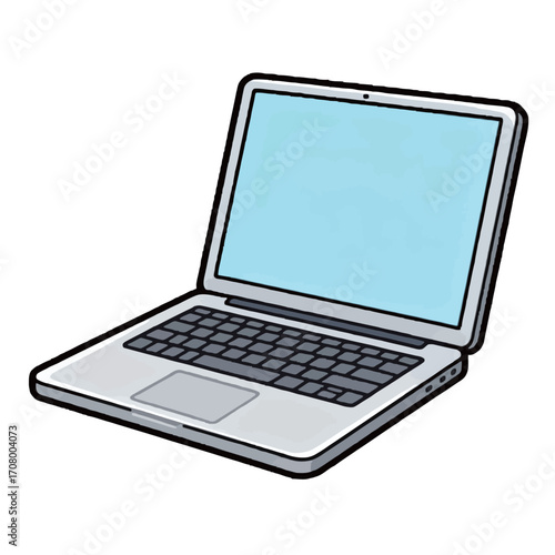 A sleek, silver laptop illustration with a blank screen, perfect for technology, business, and remote work themes.