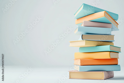 A sleek stack of contemporary books showcases a futuristic design. The top book levitates, creating an artistic and gravity-defying effect that captivates the viewer's imagination.