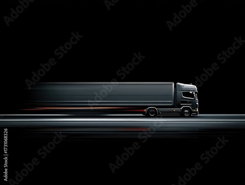 truck, highway, night, speed, motion, blur, light, dark, vehicle, transportation, power, sleek, modern, driving, road, journey, dynamic, fast, freight, delivery, long, haul, cargo, industry, asphalt, shadow, tail, headlamp