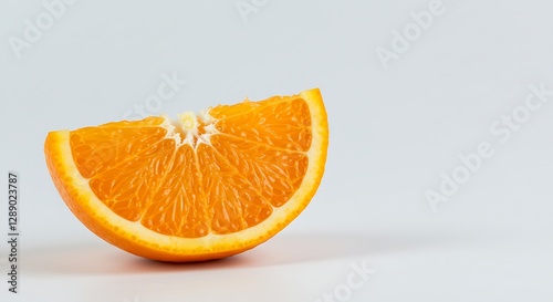 A sliced orange with its juicy texture visible, placed on a clean white background