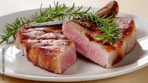 A sliced pork chop reveals pink, undercooked meat inside, raising food safety concerns. A sliced pork chop reveals pink, undercooked meat inside, raising food safety concerns.