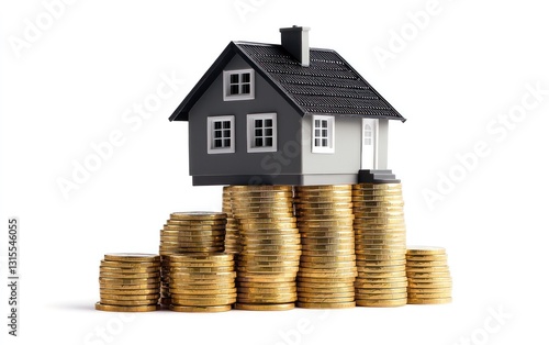 house, coin, money, real estate, home, investment, finance, financial, wealth, property, building, model, homeownership, security, economy, market, business, success, growth, savings, grey, gold, white, background, miniature, stack, pile, currency, capital, asset, purchase, mortgage, loan, rent, cost, value, price, afford, return, profit, risk, opportunity, future, stability