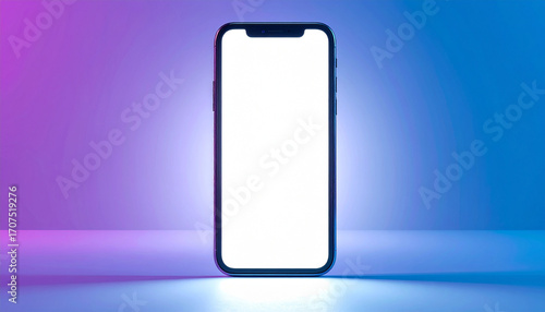 A smartphone with a blank white screen is displayed against a gradient background.