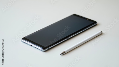 smartphone, stylus, placed, white, background
