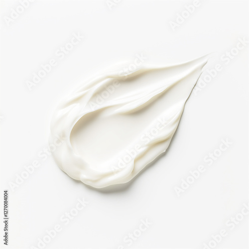 A smear of white cream on a plain white background. The texture of the cream is soft and smooth, making it perfect for skincare and beauty product mockups.