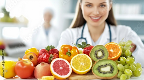 fruit, healthy, nourishment, wellness, diet, food, fresh, organic, natural, vitamin, colourful, eating, lifestyle, juicy, ripe, citrous, sweet, delicious, strawberry, grape, orange, kiwi, apple, lemon, grapefruit, peach, pepper, vibrant, produce, medicals, health care, physician, doctor, smiling, cheerful, consultation, health, alternative, therapy, plant, ingredient, balanced, advice, expert, person, presentation