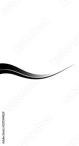 A smooth, elegant curve of black and gray shades creates a flowing design element against a blank white background.