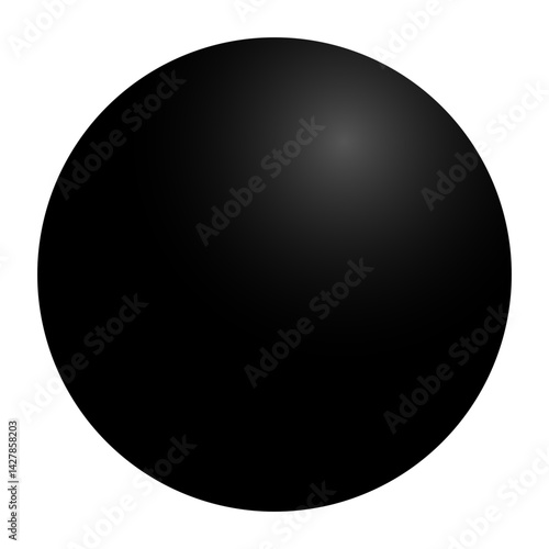 A smooth, glossy black sphere with subtle shading, appearing three-dimensional against a white background.