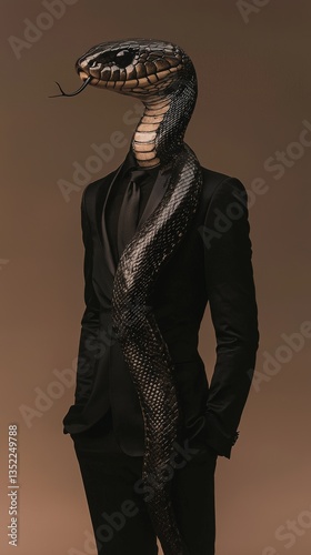 a snake head and a man in a black suit