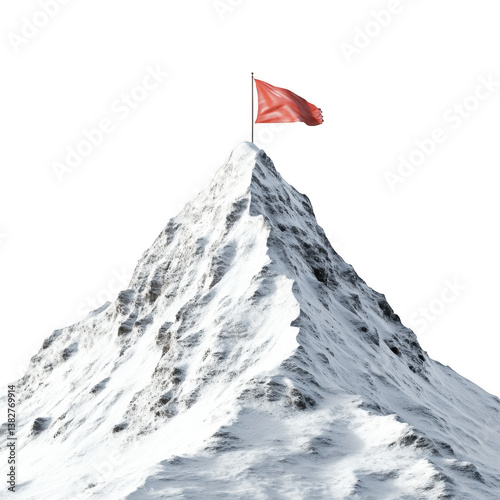 mountain, snow, peak, flag, red, summit, winter, landscape, achievement, success, challenge, goal, top, cold, outdoors, nature, sky, white, isolated, background, mountain peak, mountain summit, winter landscape, mountain summit, mountain climbing, mountain chain, rocky mountain, mountain scenery