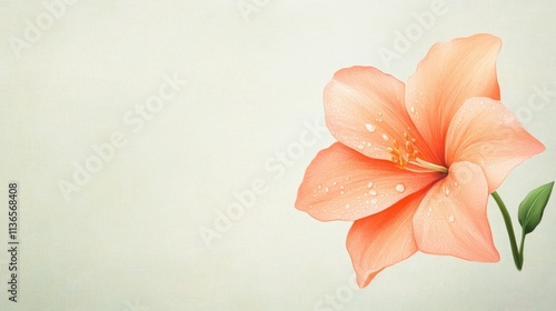 a soft and faded vintage-style illustration of a spring flower with droplets of dew