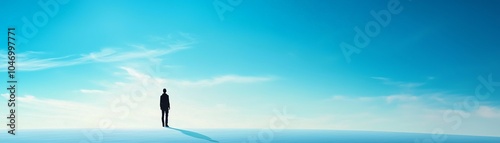 A solitary figure standing against a vast blue sky, symbolizing introspection and the journey of self-discovery.