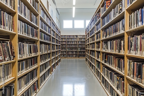 library, book, shelf, reading, study, education, cognition, research, literature, space, architecture, design, interior, organisation, information, learning, resource, access, culture, community, quiet, calm, atmosphere, row, light, modern, layout, perspective, floor, material, wood, arrangement, collection, archive, catalog, browsing, exploration, discovery, ambience, sharpened, creativity, solitude, calmness, engagement, idea, wisdom