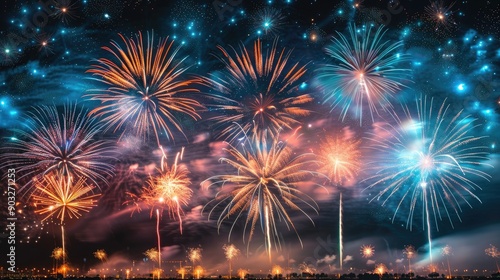 A spectacular firework display with bursts of colorful lights in the night sky