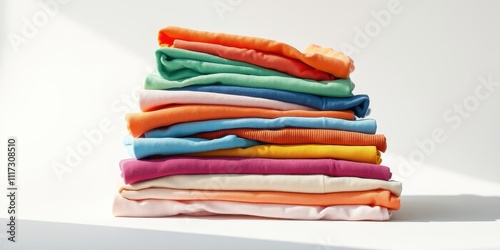 fabric, textile, pastel, colours, folded, stack, arrangement, texture, shade, soft, smooth, neat, organised, vibrant, bright, colourful, casual attire, simple, minimalist, clean, cotton, material, clothing, garment