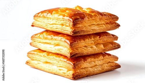 pastry, stack, gold, brown, cotton balls, baked, food, delicious, tasty, savoury, crispy, flaky, layered, buttery, stacked, rectangular, light, foodstuff, closeup, isolated, white, background, fresh, deliciously, dessert, treat, snack, lunch, dinner, breakfast, homemade, oven, product