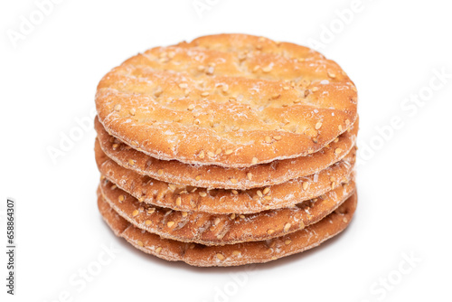baked, biscuit, cookie, cracker, crispy, crunchy, delicious, food, isolated, isolated on white, isolation, round, salt, sesame, snack, stack, tasty, wheat