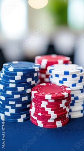 A stack of vibrant poker chips ready for exciting games and gambling activities on a felt surface