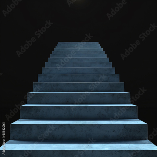 photo, object, single object, closeup, empty, stair, staircase, step, concrete, blue, dark background, minimalistic, ascending, monochromatic, shadow play, surreal, futuristic, perspective, high contrast
