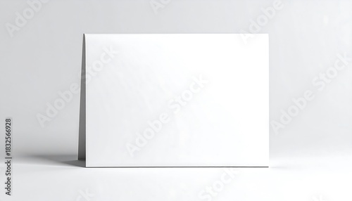A stark, minimalist composition featuring a plain, rectangular, white form. It casts a subtle shadow, emphasizing its simple shape