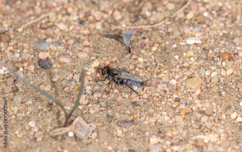A Stiletto Fly Family Therevidae Perched on Gravel Colorado