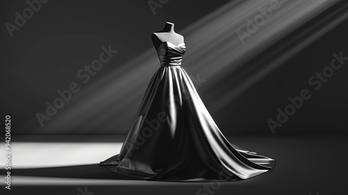 dress, gown, evening, fashion, formal, elegant, beautiful, luxurious, silk, satin, party, celebration, wedding, bride, model, mannequin, light, ray, shadow, black, white, grey, studio, isolated, background, concept, design, style, trend, glamour, luxury, apparel, fabric, textile, clothing, outfit, haute couture, sewing