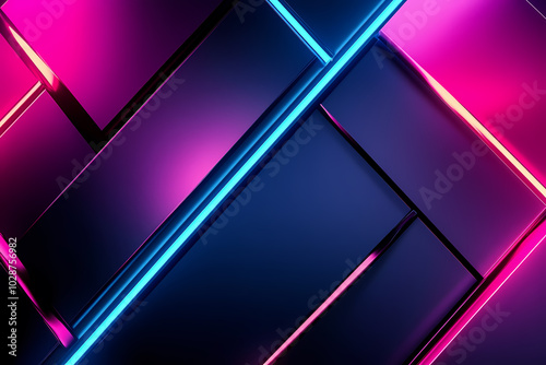 A striking geometrical background featuring a sleek combination of neon lights, dark tones, black, and chrome elements