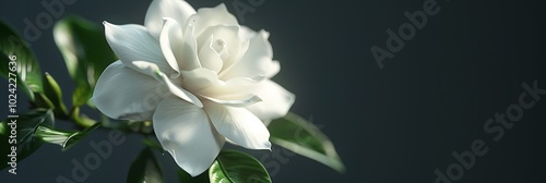 striking, white, gardenia, flower, isolated, dark, grey, background, beauty, plant, nature, elegant, bloom, fragrance, flower petals, botany, flora, scent, delicate, closeup, botanical, pure, contrast, monochrome, simplicity, decoration, exotic