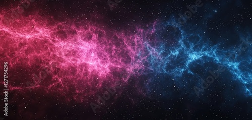 A stunning cosmic nebula featuring vibrant pink and blue colors against a dark backdrop.