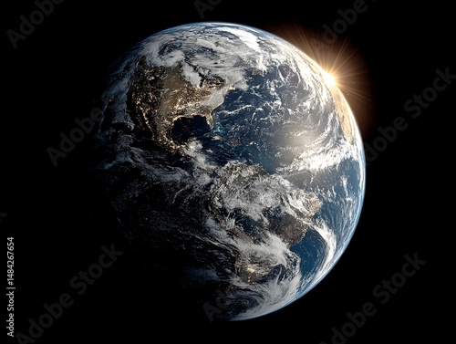 earth, planet, sunrise, space, globe, earth, sun, cloud, atmosphere, night, light, america, continent, ocean, texture, view, background, image, photo, photo, illustration, digital artwork, design, realistic, detailed, nature, environment, global, cosmos, universe, astronomy, geology, geography, science, weather, climate, satellite, map, ball-shaped