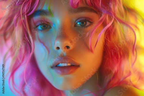 portrait, fantasy, beauty, art, contemporary, surreal, emotional, coiffure, aesthetic, depth, character, illuminated, unique, individual, fashion, aethereal, dreamlike, closeup, soft focus, mesmerizing, youth, enchanting, imaginative, culture, striking, elegance, playfulness, glow, cinematography, artistry