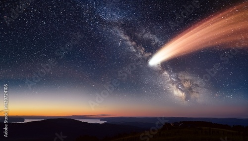 meteor, night sky, cosmic, drama, tail, star, celestial, beauty, energy, brilliance, spectacle, universe, event, light, moment, wonder, awe, power, phenomena, glow, journey, excitement, visual, illumination, transient, dance, majesty, fireball, impression, mystery, movement, colours, engagement, elegance, transformation, breathtaking, life events, inspiration, magic, exploration, depth, nature, awakening, captivating, display
