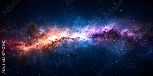 A stunning view of a colorful galaxy filled with vivid hues of blue, purple, and orange. The vastness of space is dotted with countless stars, creating a mesmerizing cosmic display.