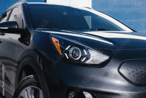 A stylish and modern electric car. fast charging port. Exterior details.