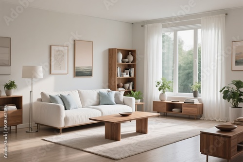 A stylish and serene living room that features a light and airy aesthetic, making it perfect for contemporary interiors