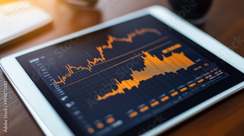 A stylish image of a tablet displaying a gold price chart with interactive features, set against a clean, modern background, emphasizing the sleek design.