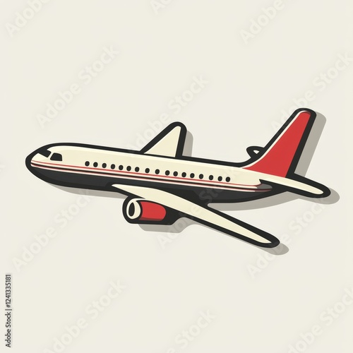 A stylized airplane illustration in a retro color scheme with a bold shadow effect.