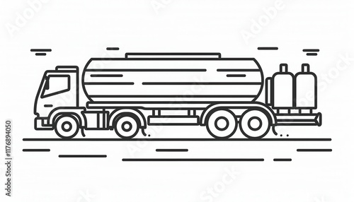 A stylized line art illustration of a tanker truck carrying fluids or gases. Suitable for transportation logistics and industrial applications.