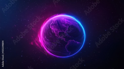 A surreal planet Earth with swirling neon rainbow colors in deep space.