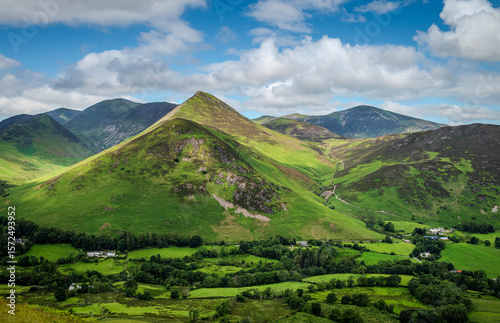 A sweeping view of the Lake District fells near Catbells, with scattered farmhouses nestled in the lush valley below. 2