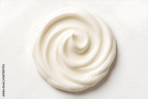 A swirl of creamy white substance, likely representing lotion, mayonnaise, or a similar product in a smooth texture. Concept Creamy White Substance, Smooth Texture, Lotion or Mayonnaise