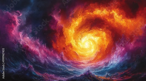 cosmic, swirling, vortex, fire, energy, vibrant, universe, celestial, abstract, galaxy, nebula, space, artwork, art, painting, canvas, brushstroke, fiery, bright, aglow, powerful, intense, abstract art, digital artwork, fine art