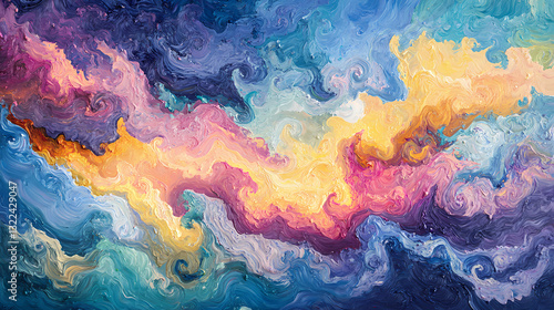symphony, vibrant, hue, chaotic, dance, swirling, effervescent, paint, cloud, illustration