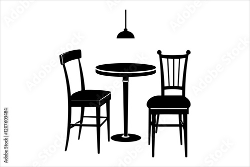 A table and chair silhouette vector illustration. Silhouettes Chairs and Table. Interior of the cafe. Vector Black Illustration Isolated On White Background.