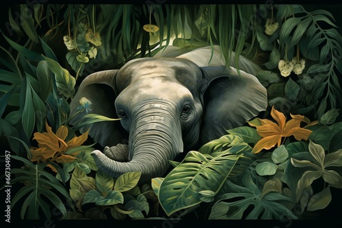 A tall animal snoozed beneath a leafy plant. Generative AI