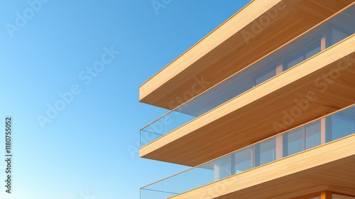 tall, building, balcony, clear, blue, sky, background, architecture, modern, wood, design, exterior, facades, construction, structure, window, city, high, urban, wall, abstract, house, new, business, office, white, perspective, geometric, estate, glasses